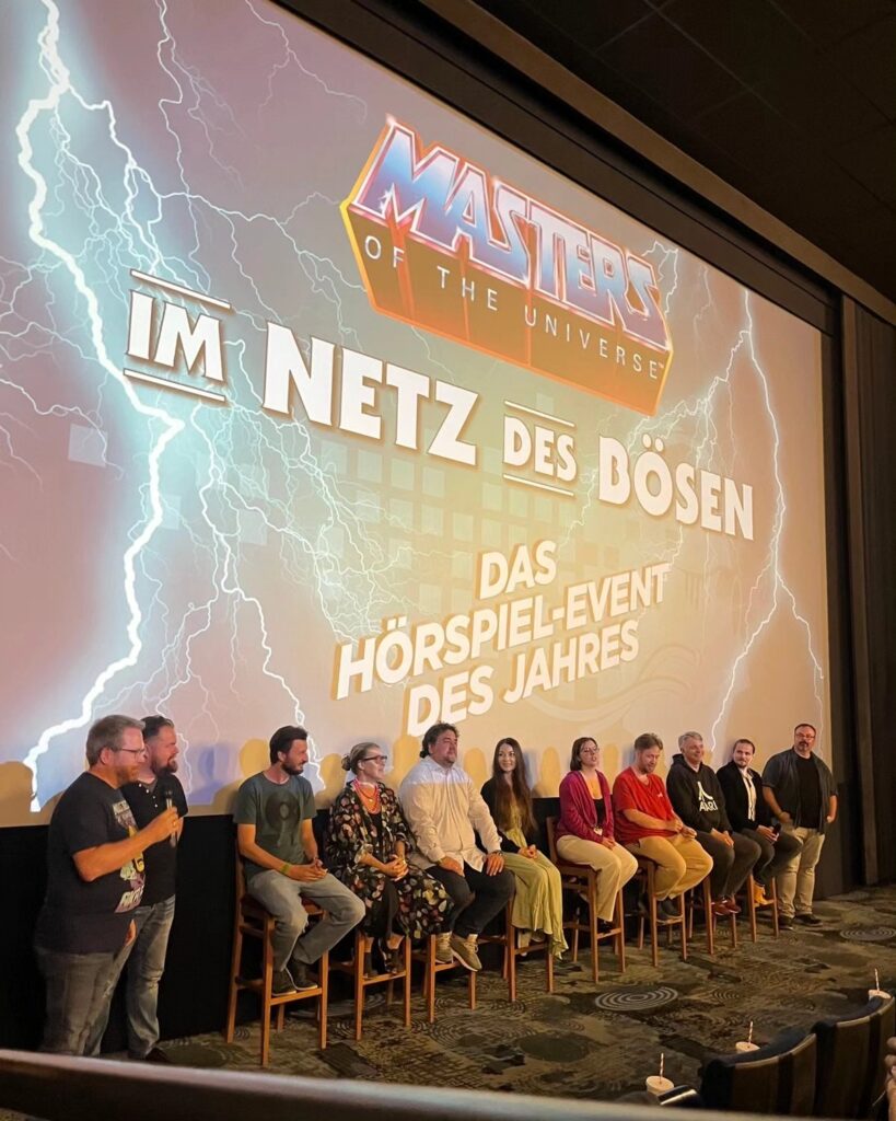 Die ersten Fans erfuhren diese auf der Weltpremiere am 27. Juli 2024 im UCI-Kino in Düsseldorf und diese war auch für die anwesenden Autoren und Sprecher (siehe Bild unten) ein großartiges Erlebnis – weitere dieser Hörspiel-Events sind nicht ausgeschlossen.