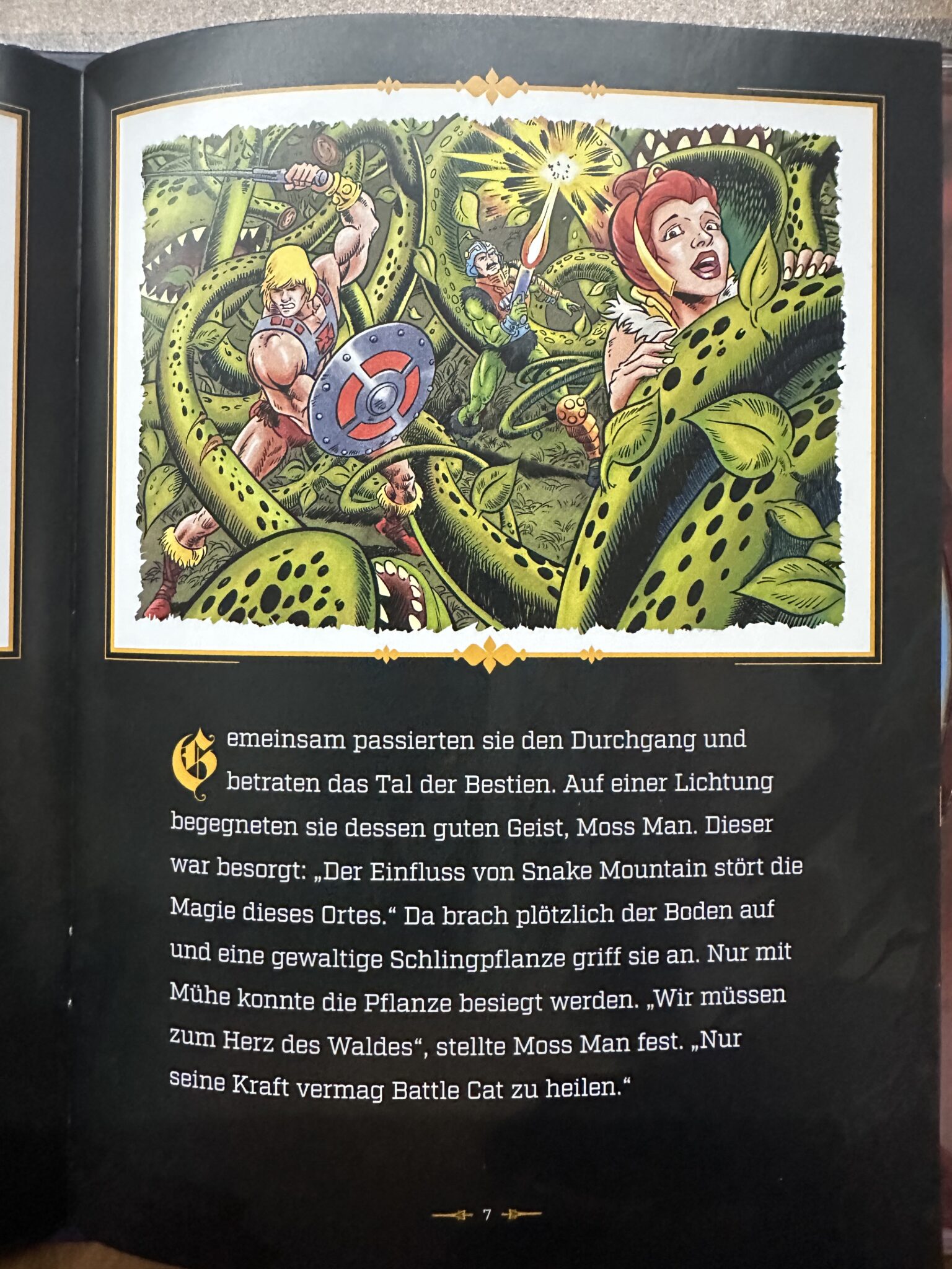 Im Tal der Bestien führt uns nach dem hohen Norden in Der Thron aus Eis in eine andere Klimazone Eternias – einen eher Urwald-artigen Ort unberührter Natur voller Geheimnisse – im sprichwörtlichen Mittelpunkt steht das Herz des Waldes. Das spektakuläre Cover-Artwork von Reyad Yousri zeigt uns den Kampf einiger Heroischen Verteidiger gegen mehrere Dämonen des Bösen im Tal der Bestien. In dieser Geschichte treffen wir erstmals auf Moss Man, den getreuen Herrn der Wälder und erfahren mehr über die Herkunft von Battle Cat bzw. Cringer. In der Rahmenhandlung gibt es einen ersten Vorgeschmack auf das Schicksal von Theydon und Doodon bei der Wilden Horde.