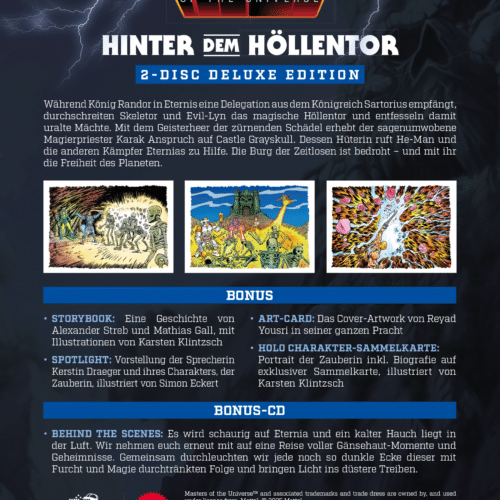 Taucht ein in eine Welt voller Abenteuer, Mysterien und unvergesslicher Charaktere mit unserer brandneuen Hörspielserie, die die zeitlosen Geschichten von He-Man, Skeletor und ihren Verbündeten und Feinden auf völlig neue Weise zum Leben erweckt. Professionelle Sprecher, ein Sounddesign das ein kinoreifes Erlebnis bietet, epische Musik und packende Geschichten werden euch in die Schlachten von Eternia versetzen. Von atemberaubenden Kämpfen bis hin zu bewegenden Charaktermomenten – jedes Kapitel unserer Hörspielserie wird euch in den Bann ziehen und euch das Gefühl geben, Teil dieser legendären Welt zu sein.